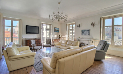 dans villa classé au coeur de st charles en étage ascenseur appartement bourgeois très ensoleillé - vaste entrée vestiaire - séjour double -cuisine équipée sur terrasse - 3 grandes chambres - salle de bains - salle d'eau - 2 wc - parquet - chauffage électrique - 3 caves - 1 atelier en sous sol - garage - video sur demande