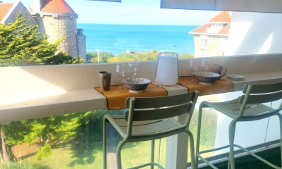 Très élégant et rare appartement à réactualiser face à la mer et à l'hôtel du Palais. D'une surface totale d'environ 200 m², il offre une magistrale pièce de vie bénéficiant d'une triple exposition, une suite avec salle de bains face à la mer, une chambre avec salle d'eau et sauna, cuisine, buanderie et studio indépendant à rénover. Cave. Ascenseur. Solution de parking possible en sus.