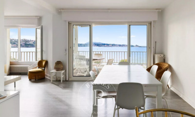 Dans un petit immeuble du centre ville avec un ascenseur, proche plage, bel appartement traversant bénéficiant d'une jolie luminosité, d'une vaste pièce de vie aux volumes généreux avec son espace cuisine, de deux chambres confortables disposant chacun d'une pièce d'eau, de wc séparés et d'une terrasse intime à l'abri des régards.