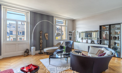 Quai Kleber, au 3ème étage avec ascenseur, l'IMMOBILIERE MERGER vous présente en exclusivité ce très bel appartement 4 pièces de 127m². Traversant, ce dernier se compose d'une vaste entrée, d'un toilette invités, d'un lumineux séjour de 50 m² avec balcon vous offrant une magnifique vue sur l'eau ainsi qu'une cuisine entièrement équipée avec un espace repas. Un dégagement avec de nombreux rangements vous mène à la partie nuit composée de deux chambres avec dressings, d'une salle de bains avec douche et bain, d'une buanderie ainsi qu'un second WC indépendant. Appartement rénové en 2014. En annexes : Une cave et un stationnement possible en sus.