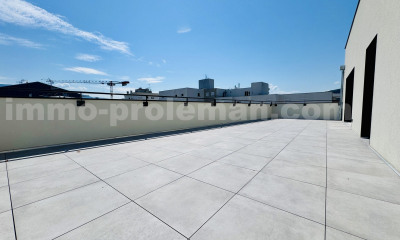 Perché au dernier étage d'une résidence contemporaine du quartier Croix d'Ambilly, cet appartement 4 pièces de 101 m² séduit par ses volumes, sa luminosité et ses deux terrasses offrant une vue dégagée jusqu'au Salève. Une adresse idéale, à seulement quelques minutes de la frontière suisse, dans un environnement résidentiel en plein renouveau. L'espace de vie, baigné de lumière grâce à une large baie vitrée orientée plein sud, s'ouvre sur une première terrasse, parfaite pour les repas d'extérieur. Une seconde terrasse, accessible depuis le séjour et les chambres, prolonge l'appartement avec un bel espace à ciel ouvert, offrant une vue panoramique sur les montagnes. Le coin nuit propose trois chambres confortables, dont une suite parentale de plus de 15 m², une salle de bains, une salle d'eau indépendante, des toilettes séparées ainsi qu'un cellier. Le tout dans un cadre calme, verdoyant et parfaitement connecté à Genève grâce à la proximité immédiate du tramway et de la gare CEVA. Un bien rare au dernier étage, qui allie confort, modernité et emplacement stratégique aux portes de la Suisse. Copropriété de 26 lots principaux - pas de procédure en cours - Charges prév : 400 € par trim.