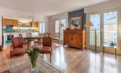 Au sein d’une rue prisée d’un des quartiers les plus recherchés de Versailles, cet appartement à rénover traversant de 143,81m² loi Carrez (146,54m² au sol) conjugue charme, volumes et élégance. Dès l’entrée, la convivialité d’un vaste salon de 29,75m² avec cheminée séduit immédiatement. Dans son prolongement, une belle cuisine dinatoire aux proportions généreuses s’ouvre sur la terrasse et jardin privatifs de 400m² environ, offrant un cadre de vie paisible et verdoyant. L’espace nuit propose une chambre principale orientée sud avec sa salle de bains attenante, une seconde chambre sur jardin disposant de sa salle de douche, ainsi qu’une troisième chambre et sa salle de bains avec vue sur jardin. L’appartement bénéficie d’un accès direct à la cave d'environ 80m². Une place de stationnement en sous-sol et un box complètent ce bien rare à Versailles. 1 144 230,77 € honoraires exclus - Honoraires de 4%TTC à charge acquéreur - Montant moyen de la quote-part de charges courantes 3 840 €/an - Julie HECK-LEJEUNE - Agent commercial - EI - RSAC VERSAILLES 880 793 211