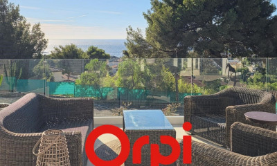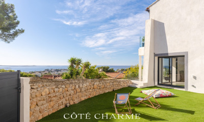 Palm'immo propose à Bandol, dans une copropriété récente et intimiste de 4 lots, découvrez ce magnifique appartement en rez-de-jardin de 104 m², offrant une vue mer exceptionnelle. L’espace de vie lumineux, orienté plein sud, s’ouvre sur une cuisine équipée avec ilot central et une terrasse idéale pour vos petits-déjeuners face à la mer. La partie nuit comprend une suite parentale avec dressing et salle d’eau, ainsi que deux chambres avec leur propre salle de douche. Climatisation réversible dans toutes les pièces. L’extérieur, d’environ 100 m², se compose de plusieurs terrasses et espaces jardin, dont une terrasse haute avec vue panoramique sur l’île de Bendor. Deux places de stationnement et une cave complètent ce bien d’exception.