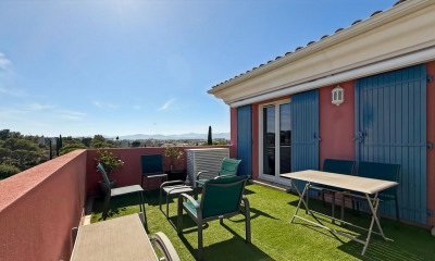 A Saint Raphael, découvrez cet appartement spacieux de 96 m² situé au dernier étage d'une résidence de bon standing avec parc et piscine. Ce bien rare sur le marché parfaitement au calme et sans vis à vis, bénéficie d'une très jolie vue dégagée sur la verdure. La cuisine aménagée et équipée s'ouvre sur un lumineux séjour de 33 m² exposé plein sud. Chambre parentale avec salle d'eau, 2 chambres avec salle de bain-toilette, toilette indépendant , idéal pour une famille. Profitez d'une terrasse de 21 m² pour vos moments de détente en extérieur. Le bien est en bon état général et offre un standing agréable. Garage et parking inclus. Situé à proximité de plusieurs établissements scolaires et de commodités telles que boulangerie et pharmacie. Ne manquez pas cette opportunité rare! Copropriété de 26 lots (Pas de procédure en cours). Charges annuelles : 3600.00 euros.
