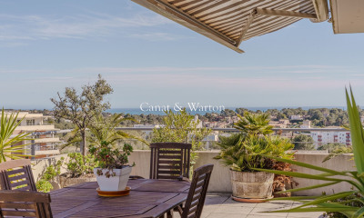Votre agence BERSAN Immobilier vous propose ce très bel appartement T3, situé au sein d'une résidence sécurisée avec piscine, à proximité immédiate des commodités. Dès l'entrée, vous apprécierez les nombreux rangements pensés pour le quotidien. L'espace de vie réunit séjour, salle à manger et cuisine semi-ouverte entièrement aménagée et équipée, l'ensemble s'ouvrant sur une grande terrasse avec store électrique, prolongée par un superbe jardin paysagé de plus de 230 m². Un véritable atout offrant une agréable sensation de vie dedans-dehors, idéale pour la région. L'espace nuit se compose de deux belles chambres, toutes deux équipées de placards intégrés et disposant chacune de leur propre salle d'eau. Deux toilettes indépendants et un espace buanderie complètent cet agencement fonctionnel. Toutes les pièces bénéficient d'un accès direct à l'extérieur, un critère rare et très recherché. Pour votre confort, l'appartement est équipé d'une climatisation gainable et présente un excellent état intérieur : il ne vous reste plus qu'à poser vos valises. Un double garage de plus de 45 m² ainsi que plusieurs emplacements de stationnement libres au sein de la résidence viennent compléter ce bien. Un appartement offrant un parfait compromis entre les avantages d'une maison et la praticité d'un appartement, dans un cadre sécurisé et privilégié. L'équipe BERSAN Immobilier reste à votre disposition pour toute information complémentaire ou pour organiser une visite. Copropriété de 170 lots (Pas de procédure en cours). Charges annuelles : 2.00 euros.