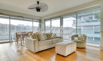 Situé au cœur du quartier recherché de la Seine Musicale, dans un immeuble sécurisé et parfaitement entretenu, ce bel appartement de 87,5 m² situé au 4ème étage, séduit par son plan moderne et sa luminosité. La pièce de vie de 34 m², avec cuisine ouverte aménagée et équipée, s’ouvre sur un balcon d’environ 12 m², esposé sud ouest, idéal pour déjeuner face à la Seine et profiter d’une vue dégagée et apaisante. L’ensemble de l'appartement est climatisé, avec volets roulants électriques dans chaque pièce doté d'un système de domotique centralisé permettant de piloter climatisation, volets, chauffage et éclairage offrant un confort de vie optimal. L’espace nuit comprend trois chambres, dont une suite parentale avec sa propre salle de bains avec espace buanderie, une salle d’eau et un WC indépendant, parfaitement adaptés à une vie de famille. Une place de parking sécurisée est disponible en supplément du prix. Un appartement coup de cœur, alliant emplacement premium, extérieur, prestations modernes et qualité de vie.