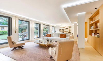 Neuilly sur seine - Rez de jardin comme une maison en plein cœur du quartier Saint James, appartement 7 pièces agencé sur sur deux niveaux. Entièrement rénové avec des matériaux de qualité et des prestations haut de gamme, il se compose de : Entrée ouvrant sur la double réception de 75 m² ouvrant sur le jardin de 300 m², une cuisine dinatoire. A l'étage supérieur, la partie nuit avec la suite parentale avec dressing et salle de bains, 3 autres chambres se partageant deux salles de bains et de nombreux rangements. Deux caves et un emplacement de parking complètent ce bien d'exception.