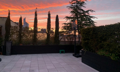 À Neuilly-sur-Seine, à quelques pas du Bois de Boulogne, ce somptueux appartement prend place dans l'ancien hôtel particulier de Marcel Boussac — une adresse mythique sublimée par une rénovation d'architecte aux finitions remarquables. Développant 191 m², ce lieu de réception conjugue avec subtilité héritage classique et design contemporain. Les volumes spectaculaires, la belle hauteur sous plafond, le parquet Versailles en chêne massif, la cheminée et la triple exposition baignent les espaces de lumière tout au long de la journée. La vaste réception s'ouvre de plain-pied sur une terrasse arborée d'environ 40 m², véritable écrin de verdure sans vis-à-vis — un privilège rare en cœur de ville. La cuisine / salle à manger parfaitement équipée s'intègre avec élégance dans cet ensemble pensé pour recevoir avec raffinement. L'espace nuit accueille une suite parentale avec dressing et salle de bains, ainsi que deux chambres disposant chacune de leur salle d'eau. Un studio de service indépendant de 20 m² complète idéalement ce bien. Deux places de stationnement, un double box fermé et une cave viennent parfaire ce bien d'exception, alliance parfaite entre prestige patrimonial et art de vivre contemporain.