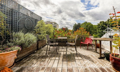 Idéalement situé dans une résidence des années 50, disposant des services d'une gardienne, proche des écoles et commerces, appartement de 131 m² en rez-de-terrasse. Entrée, double séjour, cuisine équipée semi-ouverte avec un accès terrasse de 36 m², suite parentale avec sa salle d'eau et toilettes, 2 chambres d'enfants, buanderie, salle de bains, toilettes séparées, studio de service indépendant (ou 4ème chambre) comprenant salle d'eau, kitchenette pouvant être reliée à l'appartement, toilettes séparées. Nombreux rangements. Parfait état et au calme absolu. Cave et parking en sus.