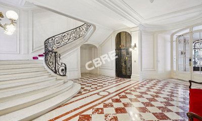 Place du Trocadéro, au sixième et dernier étage d'un élégant immeuble haussmannien gardienné et sécurisé, appartement traversant d'une surface de 235,94 m² accessible directement par ascenseur. Cet appartement clés en mains a bénéficié d'une rénovation luxueuse. Il est domotisé et climatisé. Il comprend une entrée, une pièce de réception avec cheminée, une salle à manger, une cuisine avec office et cave à vin, une suite de maître avec salle de bains et dressing, trois chambres avec leur propre salle de bains. En mezzanine, un salon TV offre une vue splendide sur la tour Eiffel. Un studio (en sus) de 20,51 m² complète l'ensemble et offre ainsi la possibilité d'une cinquième chambre. Trois caves et un garage dans la cour de l'immeuble (en sus).