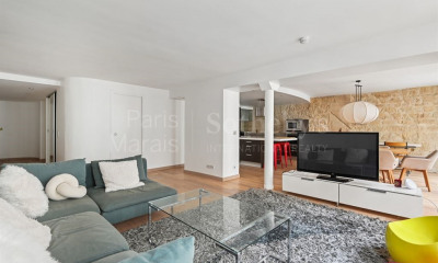 RARE - Idéalement situé en plein centre de Paris dans un quartier historique et recherché à proximité immédiate de la place des Victoires nous vous proposons un appartement de 107m² loi Carrez et 125m2 au sol traversant avec 3m80 de hauteur sous plafond au 1er étage par ascenseur d'un immeuble ancien du XVIIIe siècle de très haut standing. ce bien se compose comme suit : une entrée avec placard donnant directement sur un vaste salon/salle à manger traversant avec cuisine dinatoire ouverte de (60m²) avec 3 grandes fenêtres apportant une très jolie lumière Sud-Est, deux chambres dont une chambre de Maître avec sa salle de bains et son toilette et dressing, une seconde salle d'eau avec toilette, une mezzanine pouvant faire un bureau ou une chambre d'appoint. L'appartement dispose de nombreux rangements et placards, travaux de qualité avec des matériaux de premier choix. Très belle copropriété de 8 lots uniquement, parquet, cheminée, plan optimal avec de beaux volumes, lumineux exposition Sud-Est. Charges générale de copropriété : 625€/Trimestre Chauffage et eau chaude individuelle au Gaz Copropriété de 8 lot(s) d'habitations, pas de procédure en cours. Honoraires charge acquéreur : 5% ttc Mandat de vente N°0366 Les informations sur les risques auxquels ce bien est exposé sont disponibles sur le site Géorisques :