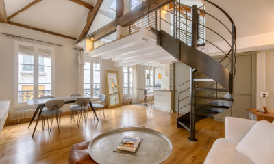 Appartement de 61 m² au 3 € étage avec ascenseur Dans un immeuble ancien bien entretenu avec ascenseur, appartement traversant de 61 m², lumineux et au calme, situé au cœur du Marais. Entièrement à rénover, il se compose d'une entrée, d'un double séjour avec cheminée, d'une cuisine indépendante, de deux chambres sur cour, d'une salle d'eau et de WC séparés. Plan fonctionnel offrant plusieurs possibilités d'aménagement. Une cave.