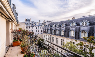 Un superbe appartement duplex très lumineux de 116m² situé au 4ème et dernier étage avec ascenseur, d'une belle copropriété de standing datant de la fin du 18ème siècle. Il est composé, au premier niveau, d'une entrée, d'un vaste salon/ salle à manger de 40m² avec cheminée, d'une cuisine aménagée et équipée ouverte en style bar sur le salon, d'une chambre principale avec sa salle d'eau et son dressing, et de toilettes invités. Au deuxième niveau, d'une seconde chambre en suite avec salle de bains et wc, un vaste dressing, un débarras et un espace buanderie. Outre une localisation très recherchée et une situation en penthouse, l'appartement est très lumineux et au calme absolu, et bénéficie d'un plan optimisant l'espace sans perte de place, tout en alliant le confort du moderne au charme de l'ancien : parquet au sol dans toutes les pièces de vie, cheminée fonctionnelle, belles poutres apparentes… Un bien rare, plein de charme. "Bien soumis au régime de la copropriété"