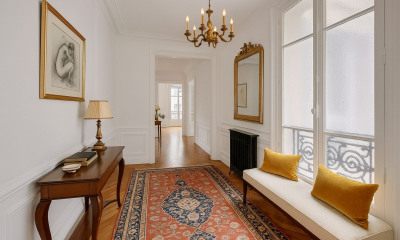 À quelques pas de la place Saint-Germain et du café de Flore, au cœur d'un immeuble ancien de grand standing parfaitement entretenu et sécurisé par une gardienne, cet appartement d'exception de 83.19 m² carrez, situé au premier étage avec ascenseur, séduit par son volume et son élégance rare. Dès l'entrée, la lumière baigne un vaste séjour sublimé par une hauteur sous plafond de 4,55 mètres et de grandes fenêtres ouvrant sur une cour arboré au calme. L'espace s'articule autour d'une cuisine américaine entièrement aménagée sur mesure, dont les finitions raffinées et les matériaux d'exception, notamment un plan de travail en quartzite, soulignent le caractère unique de ce bien. L'espace nuit comprend une première chambre disposant d'une salle de douche en marbre blanc avec W.C indépendant et de nombreux rangements sur mesure intégrés. A l'étage, une somptueuse suite parentale offre une atmosphère intime et élégante. L'ensemble a été entièrement rénové avec des prestations haut de gamme et bénéficie d'un système domotique de pointe : rideaux en velours motorisés, téléviseur intégré et un système audio Sonos installé dans chaque pièce, garantissant un confort absolu et une immersion sonore de qualité. La copropriété, entretenue avec soin, dispose d'une charmante cage d'escalier préservant l'authenticité du lieu. Une cave complète ce bien ainsi qu'un parking sur cour en annexe. Les informations sur les risques auxquels ce bien est exposé sont disponibles sur le site Géorisques : georisques. gouv. fr
