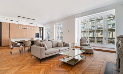 Cours Albert 1er - Situé au 3ème étage d’un très bel immeuble récent avec gardien, cet appartement de 106m² a fait l’objet d’une rénovation d'exception. Exposé Sud, inondé de soleil et bénéficiant d’une vue totalement dégagée, il comprend: - Un vaste salon agrémenté d’un superbe bar professionnel et prolongé par un balcon plein Sud avec vue Tour Eiffel, - Une salle à manger avec cuisine Boffi totalement équipée, - Une chambre de maître avec sa salle de bains (avec toilettes) et son luxueux dressing, - Toilettes invités, - Espace buanderie. Climatisation. Rénovation et matériaux de qualité exceptionnelle. Un emplacement de parking dans l’immeuble et une cave sécurisée complètent ce bien.