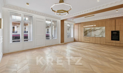 Golden Triangle – Just Steps from Avenue Montaigne Located on the 4th floor with elevator of a prestigious freestone building, this elegant 95 sqm apartment offers a rare and sought-after living environment in the heart of the Golden Triangle. Key features: Bright double living room facing due south with 3 large windows 15 sqm wrap-around balcony with open views of Avenue Montaigne, Avenue George V, and the Eiffel Tower Two bedrooms, each with en-suite bathroom, built-in storage, and WC Separate fully equipped kitchen Star-shaped floor plan with no wasted space Integrated air conditioning, beautiful volumes, high ceilings Flooded with natural light, excellent condition Healthy cellar included An exceptional address in one of Paris’s most prestigious neighborhoods. A perfect pied-à-terre, primary residence, or high-end investment. Triangle d'Or – À deux pas de l'avenue Montaigne Situé au 4ème étage avec ascenseur d'un immeuble en pierre de taille de haut standing. Cet élégant appartement de 95m2 offre un cadre de vie rare et recherché, au cœur du Triangle d'Or. Caractéristiques principales : Double séjour lumineux exposé plein sud avec 3 grandes fenêtres Balcon filant de 15m² avec vues dégagées sur l'avenue Montaigne, Georges V et la Tour Eiffel Deux chambres, chacune avec sa salle de bains, rangements intégrés et WC Cuisine indépendante entièrement équipée Plan en étoile, sans perte d'espace Climatisation intégrée, beaux volumes, belle hauteur sous plafond Appartement baigné de lumière, en excellent état Cave saine Une adresse d'exception, dans l'un des quartiers les plus prestigieux de Paris. Un parfait pied-à-terre, résidence principale ou bien d'investissement de standing.