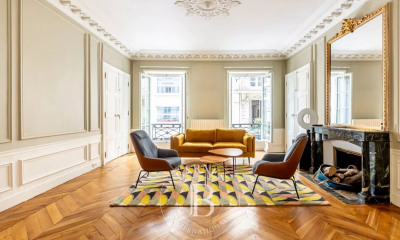 RUE DU FAUBOURG SAINT-HONORÉ - À QUELQUES PAS DE LA PLACE BEAUVAU, ENTRE LE PALAIS DE L'ELYSÉE ET L'HÔTEL BRISTOL - Seul sur le palier, au quatrième étage d'un bel immeuble ancien équipé d'un ascenseur, NOVESTIA IMMOBILIER vous propose un magnifique appartement familial de 170.30m² muni d'un long balcon filant. Ce bien, entièrement rénové en 2022 avec des matériaux haut de gamme, comprend une entrée, un double séjour de 81.20 m² avec un balcon filant de 6.91m² exposé sud-ouest et bénéficiant d'une vue sur la place Beauvau, l'entrée du palais de l'Elysée ainsi que sur le dégagement de la rue du Cirque, une vaste cuisine américaine équipée avec un îlot central, une partie salle à manger, trois suites climatisées, au calme absolu, avec pour chacune son dressing et sa salle d'eau muni d'un chauffage au sol, dont deux avec wc, une buanderie, ainsi que des wc invités. Appartement clé en main, en excellente état, bénéficiant de prestations haut de gamme, avec du parquet en point de Hongie, du double vitrage, l'air conditionné, une très belle luminosité, de nombreux rangements et un plan équilibré et confortable. Une cave complète ce bien. Quartier hautement sécurisé, réputé pour ses galeries d'art et ses antiquaires. Adresse exceptionnelle.