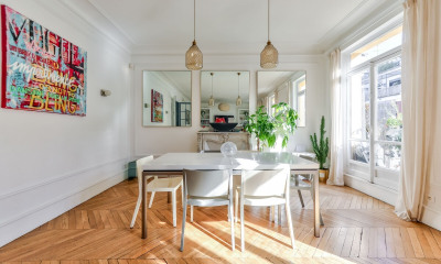 ENGEL & VÖLKERS vous présente, à quelques pas du prestigieux Parc Monceau, un écrin de 52,15 m² Loi Carrez et 60 m² surface au sol, au 6ème étage avec ascenseur d'un immeuble haussmannien d'exception. Cette demeure rare, offrant un cadre de vie à la fois privilégié, discret et confortable, dispose de trois balconnets avec une vue imprenable sur la Basilique du Sacré-Cœur. Créant une atmosphère unique, sublimée par des produits haut de gamme, tant dans les espaces privatifs que dans les parties communes. Quand l'architecture devient art de vivre avec le raffinement en signature. La pièce à vivre, d'une superficie de près de 30 m², accueille une cuisine ouverte réalisée avec des matériaux nobles. L'espace se prolonge vers une chambre élégante et son dressing sur mesure, une salle de bains sobrement luxueuse et de nombreux rangements intégrés. Une vision du luxe à la française, idéal pour un pied-à-terre ou une résidence principale. Une cave accompagne ce bien. DPE : D/214 GES : D/43 Estimation des coûts annuels d'énergie du logement : 660 euros - 950 euros Copropriété de 30 lots Charges annuelles moyennes : 2930 euros Procédure en cours : Non Honoraires de transaction TTC à la charge du vendeur Les informations sur les risques auxquels ce bien est exposé sont disponibles sur le site Géorisques : Proche Parc Monceau