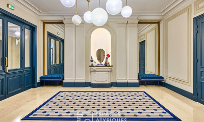 PARISEARCH – EXCLUSIVITÉ À deux pas du parc Monceau, au sein d'un superbe immeuble haussmannien avec ascenseur, ce duplex traversant d'exception situé au dernier étage offre des prestations haut de gamme. Entièrement rénové par architecte avec goût et raffinement, cet appartement traversant de 245 m²pondéré (265 m2 au sol et 237 m2 LC) allie parfaitement le charme de l'ancien (parquet en pointe de Hongrie, cheminées, moulures, hauteur sous plafond de 3,30 m) à une décoration contemporaine élégante. Baigné de lumière avec des vues dégagées, il bénéficie d'une exposition Ouest pour les pièces de réception et la suite parentale, et Est pour la cuisine. Il se compose d'une entrée, d'une vaste réception ouvrant sur un balcon filant d'une cuisine dinatoire entièrement équipée, d'un WC invités, ainsi que d'une superbe suite parentale avec balcon, salle de bains et WC, dressing sur mesure en bois noble et buanderie équipée. À l'étage : deux chambres, deux salles de bains et WC, un dressing et une family room pouvant faire office de quatrième chambre (possibilité également de créer une cinquième chambre). Climatisation dans la suite parentale et à l'étage supérieur. Excellent plan, sans perte de place, nombreux rangements. Trois caves complètent ce bien. Immeuble sécurisé avec gardien. Possibilité de location de parking dans la rue. Bien rare dans un emplacement très recherché. Sectorisation Collège CARNOT-Ecole Bilingue. “Les informations sur les risques auxquels ce bien est exposé sont disponibles sur le site Géorisques ”. N'hésitez pas à me contacter Nathalie PARISEARCH
