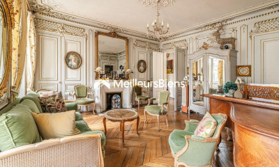 Situé au 1er étage avec ascenseur d'un immeuble ancien de standing, appartement familial d'une superficie de 128.55 m² loi Carrez. Il se compose : d'une entrée, d'un salon/salle-à-manger ouvrant sur un balcon filant, d'une cuisine aménagée semi ouverte, de quatre chambres dont trois avec salle de douche et la quatrième avec salle de bains et toilettes ainsi que des toilettes séparées. Au calme et en parfait état, cet appartement bénéficie de rénovations haut de gamme. Une cave complète ce bien.