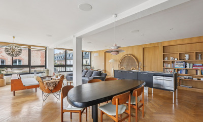 Paris 14 - Alésia - Niché à l'arrière d'une petite copropriété, à l'abri des regards et du tumulte urbain, comme une maison, cet appartement de standing bénéficie d'un charme unique et d'une qualité de vie remarquable. Rénové avec des matériaux de qualité, ouvert sur une grande terrasse arborée, il se compose d'un double séjour de réception d'environ 40 m² avec cuisine américaine aménagée et équipée, de deux chambres, d'une salle d'eau et d'une salle de bains. L'appartement dispose également de deux toilettes indépendantes et d'une grande buanderie. Le garage privatif, accessible directement depuis l'appartement, offre un confort et une indépendance rares en milieu urbain. La surface actuellement déployée sur 108 m², comprend 74 m² loi Carrez et 88,70 m² habitables et allie de beaux volumes, des prestations de qualité et une excellente fonctionnalité. Ce bien rare au charme indéniable séduit par son calme absolu, son atmosphère chaleureuse et sa proximité immédiate des commerces et des transports. L'ESPACE EXTÉRIEUR : en retrait de la copropriété, à l'abri des regards et de toute nuisance sonore, la magnifique terrasse de 40 m², aménagée avec de superbes végétaux, constitue un véritable havre de paix, parfaitement intégré dans la continuité du séjour. TERRASSES ET JARDINS - Jean-Claude VIGNAUD