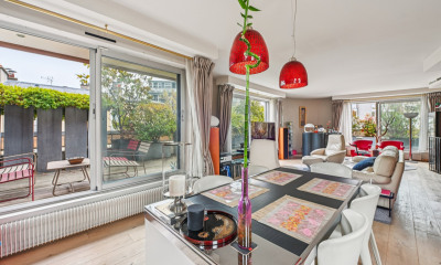 Ce bel appartement intégralement rénové est situé au septième et dernier étage accessible par ascenseur au sein d'une copropriété récente. D'une superficie de 86,01m² loi Carrez, il est baigné de lumière et entièrement entouré d'un balcon filant de 29,07m² au sol. Son plan compact comprend un séjour et une salle à manger avec vue panoramique sur la tour Eiffel, une cuisine semi-ouverte, deux chambres dont une avec salle de bains, une salle de douche avec des toilettes, un dressing, des toilettes indépendantes et nombreux rangements. Une cave complète ce bien rare. Ce bien bénéficie d'une localisation idéale à proximité de l'École Bilingue, des commerces, des transports et à deux minutes du Champ de Mars. Possibilité d'un box fermé dans l'immeuble.