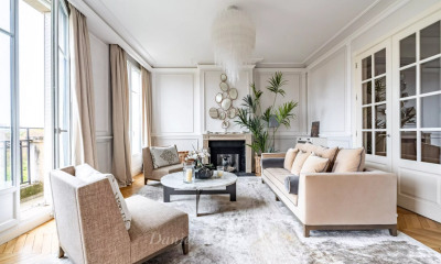 Dans le 16e arrondissement, au sein d'une rue discrète perpendiculaire à la Seine, les trois derniers étages d'un hôtel particulier Art déco, avec une spacieuse terrasse. L'hôtel particulier a été érigé en 1925 pour le compositeur Pierre Onfroy de Bréville par Charles Abella, qui a remporté le deuxième grand prix de Rome en 1907. Sa façade, qui imite la pierre au premier niveau, puis en brique rouge agrémentée d'un bandeau à motifs géométriques entre le deuxième et le troisième étage, est ornée de détails en hommage au commanditaire. Au-dessus de la porte d'entrée se trouve une baie ornée d'une grille en fer forgé représentant une lyre antique, tandis que les deux portes-fenêtres en plein cintre du premier étage sont surmontées d'allégories à la musique : une cigale musicienne « née » sur une flûte de pan et une autre sur un aulos - la flûte double des Grecs anciens. Un spacieux hall compte un escalier en pierre qui dessert le premier niveau où se trouve l'accès à la partie privative de la maison. Un escalier, à l'intérieur, conduit au deuxième étage qui est constitué d'un grand salon traversant donnant sur une terrasse de plus de 30 m². La cuisine se trouve sous une véranda créée en 2024, dont deux côtés s'ouvrent sur la terrasse. Le troisième étage abrite trois chambres et un bureau ainsi que deux salles d'eau et une salle de bains. Le quatrième étage compte une pièce de réception traversante d'environ 50 m² qui s'ouvre sur un grand balcon. La pièce, issue de la surélévation de 2024, pourrait être divisée et adaptée en fonction des besoins des futurs résidents. Un sous-sol privatif de plus de 100 m² est très sain. Il pourrait être transformé en studio de musique, en salle de sport ou en spa, entre autres. Enfin, un garage de près de 18 m², dans l'immeuble en option.