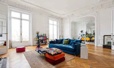 Fairway Luxury Real Estate vous propose cet élégant appartement familial à rénover de 261 m² situé au 5 € étage d'un immeuble haussmannien en pierre de taille, à proximité immédiate du Parc Monceau et de Fénelon. Exposé sud et bénéficiant d'un balcon filant, il offre des vues totalement dégagées sur les toits de Paris et la Tour Eiffel. Seul sur le palier, l'appartement présente un plan remarquable et modulable. La galerie d'entrée ouvre sur une vaste réception baignée de lumière, composée d'un grand séjour et d'une salle à manger attenante. La partie nuit réunit quatre chambres de belle taille ainsi qu'un bureau pouvant aisément être aménagé en cinquième chambre. Une cuisine indépendante avec office, une salle de bains, une salle d'eau et de nombreux rangements complètent cet ensemble à rafraîchir. La hauteur sous plafond atteint environ 2,90 m. L'exposition sud-ouest côté réception assure une luminosité continue et valorise les volumes, le balcon filant prolongeant les pièces à vivre avec une perspective sans vis-à-vis. L'immeuble, très bien entretenu, dispose d'un service de gardien et d'un haut niveau de sécurité. Les éléments d'époque ont été préservés, soulignant l'authenticité du lieu : parquet, moulures, proportions classiques. Une grande cave complète le bien. Possibilité d'acquérir, en sus, un studio au 6 € étage. Découvrez également notre sélection exclusive de propriétés à Paris, au Pays Basque, sur la Côte d'Azur et à Lisbonne, offrant des opportunités uniques pour tous les budgets.