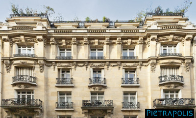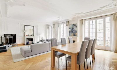 Au cinquième étage d'un immeuble en pierre de taille de standing, un appartement familial et de réception de huit pièces comprenant : une galerie d'entrée avec penderie, une double réception de près de 70 m² avec balcon filant, une cuisine dînatoire, six chambres, deux salles de bains, des toilettes séparées et de nombreux rangements. L'ensemble est à rénover. En annexe une triple cave. En supplément, possibilité d'acquérir une place de parking, une chambre de service et deux débarras de service.
