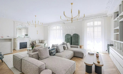 Rue de Prony; Au troisième étage par ascenseur d'un très bel immeuble en pierre de taille avec gardienne à demeure, superbe appartement de 159,60m² loi Carrez. Il comprend une entrée, un séjour, une salle à manger avec cuisine ouverte, un bureau, quatre chambres dont une suite parentale avec salle de douche et dressing, une salle de bains et deux toilettes séparées. Ce bien bénéficie de très beaux volumes avec plus de 3,20m de hauteur sous plafond et a su conserver le charme de l'ancien: parquet en point de Hongrie, moulures et cheminées. Deux caves complètent cette offre. Emplacement très recherché à proximité immédiate du parc Monceau. Sectorisation Carnot.