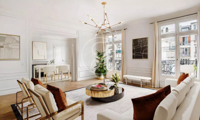 À deux pas du Parc Monceau, un emplacement prisé à proximité immédiate des meilleures écoles, commerces de qualité et axes de transport. Dans l'écrin d'un immeuble haussmannien de 1900 aux parties communes remarquables, se dévoile au deuxième étage un appartement de 171,9 m² Carrez d'une rare élégance. Seul sur palier, il garantit calme absolu et intimité préservée. Entièrement repensé en 2019 par un architecte de renom, ce bien d'exception compose avec maestria le charme de l'architecture classique et le raffinement contemporain. Volumes généreux, matériaux nobles et finitions soignées dessinent un art de vivre unique. La distribution harmonieuse révèle une entrée accueillante, une double réception baignée de lumière naturelle sublimée par une cheminée d'époque et prolongé d'un balcon filant. L'espace nuit déploie trois chambres dont une suite parentale, un bureau modulable, deux salles de bains et une cuisine équipée indépendante. Deux caves spacieuses et un gardien complètent les prestations de cet immeuble de standing. Une adresse confidentielle pour les amateurs d'excellence parisienne.