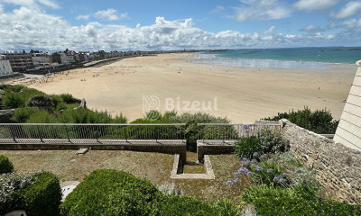 Situé dans une petite rue calme de Saint-Malo, ce bel appartement de 65,81 m² (loi Carrez) bénéficie d'un emplacement rare avec vue sur la mer. Implanté au rez-de-chaussée côté rue mais s'élevant au premier étage côté mer, il offre une organisation en étoile idéale : Côté Est : deux chambres lumineuses, Côté Ouest : un salon avec cuisine ouverte donnant sur la mer, prolongé par une loggia de 7 m². L'appartement est traversant, ce qui garantit luminosité et ventilation naturelle. Il dispose également d'une salle d'eau, de WC indépendants, d'une cave et d'un stationnement protégé.