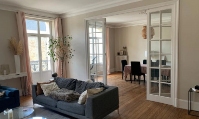 SAINT-SERVAN Bas-Sablons - 50m des commerces du centre-ville et du marché - pleine vue mer, très bel appartement dans une petite copropriété de deux logements sans charges. Bâtiment très récent cinq ans sous garanties décennales. Il comprend : une entrée indépendante, deux chambres, salle de bain, une grande pièce de vie sur mer avec une cuisine salle à manger entièrement aménagée. L'ensemble des pièces ayant une vue sur la mer à l'Ouest. Parfait état et belles prestations. 71 m² carrez pour 81 m² au sol. Rare à la vente sur ce secteur.