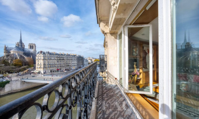 Au cœur de Paris, sur l'Île de la Cité, magnifique appartement de 118,09m² loi Carrez et 122,38m² au sol, a bénéficié d'une rénovation ultra luxueuse, alliant avec subtilité le charme de l'ancien et le confort moderne. Au quatrième et dernier étage avec ascenseur d'un bel immeuble, cet appartement propose : une galerie d'entrée menant à une cuisine aménagée ainsi qu'une vaste pièce de vie de 43m² et 4 mètres de hauteur sous plafond offrant une vue imprenable sur les deux tours et la flèche de Notre-Dame, deux suites avec salle de bains et toilettes, une buanderie et des toilettes invités. Traversant et baigné de lumière, il dévoile une atmosphère digne d'une suite d'hôtel, sublimée par des tonalités subtiles et des menuiseries sur mesure : appartement vendu meublé. Climatisation, calme absolu et prestations haut de gamme. Copropriété sécurisée et gardiennée. Une cave complète cette offre. Un parking boxé en sus. au prix de 100.000 €.