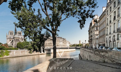 Collection privée - Adresse confidentielle - Dossier sur demande - Ile Saint-Louis Dans un immeuble du XVIIe siècle, cet appartement d'exception situé à l'étage noble avec ascenseur s'ouvre sur une cour pavée au calme absolu. Atout rarissime au coeur de l'île : accès direct au parking par ascenseur. Déployé sur deux niveaux, il développe 197,17 m² Loi Carrez (209,63 m² au sol) et offre une atmosphère de grande demeure historique : 4,60 m de hauteur sous plafond, poutres anciennes, cheminées, parquet Versailles, matières nobles. Belles pièces de réception en enfilade, bureau, salle à manger, cuisine indépendante et véranda intimiste. Suite parentale. Une mezzanine-bibliothèque distribue trois chambres, chacune avec salle d'eau et toilettes. Appartement climatisé. Deux caves -Gardienne 24 h/24 h Garage avec place de parking en sus. Copropriété de 15 lots (Pas de procédure en cours). Charges annuelles : 5640.00 euros.