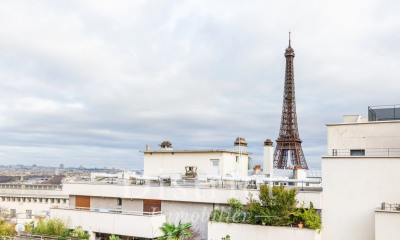 PARIS XVI - JARDIN DU RANELAGH : Sotheby's International Realty vous invite à découvrir un bien d'exception : un appartement élégant aux caractéristiques recherchées, couronné par un toit terrasse offrant une vue imprenable sur le Bois de Boulogne et La Défense. Situé à quelques pas du jardin du Ranelagh, dans un environnement familial et prisé, ce lieu de vie unique vous offrira un cadre de vie unique. Occupant seul le dernier étage, cet appartement lumineux de près de 200m² avec cheminée fonctionnelle se distingue par ses volumes généreux et son agencement harmonieux. La partie séjour, spacieuse, lumineuse et sans aucun vis-à-vis, permet de profiter de moments conviviaux privilégiés. Coté Est, la salle à manger s'harmonise avec une spacieuse cuisine dinatoire aménagée et équipée, laquelle donne accès à une buanderie discrète et fonctionnelle. La partie nuit se compose quant à elle de deux espaces. L'un, côté Nord, est occupé par une belle et grande suite parentale avec sa salle de bains et ses toilettes. Le second, côté sud, comprend deux chambres séparées par une salle d'eau commune. L'atout magistral de cet appartement réside en son toit-terrasse exceptionnel, accompagné d'un jardin d'hiver vous permettant de profiter de splendides couchers de soleil à tout moment de l'année. Rareté, luminosité et sérénité caractérisent ce bien d'exception, pensé pour offrir un cadre de vie incomparable. Un vaste espace de stockage est également proposé avec une cave de 20 m², aisément accessible par ascenseur. Enfin, un double box de 30 m² complète ce bien rare sur le marché.