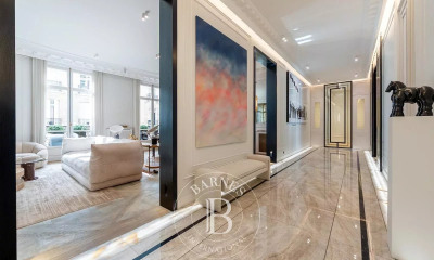 Paris 16ème/Immeuble Walters. Appartement de réception entièrement refait à neuf d'environ 390m2 ayant appartenu à Pierre Balmain. Belle galerie d'entrée donnant sur salon, salle à manger avec très belle hauteur sous plafond, cheminée et murs dorés à la feuille d'or. 2ème salon/bibliothèque séparé par des panneaux en albâtres. Cuisine indépendante entièrement équipée ainsi qu'une buanderie. Suite parentale avec dressing et salle de bain en marbre. 3 autres chambres en suite. Un emplacement de parking pour 2 véhicules.