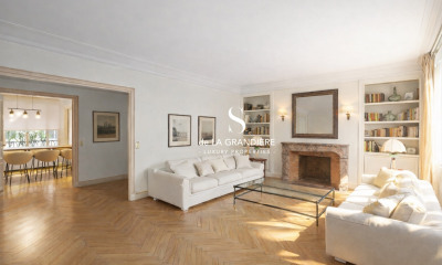 Vues exceptionnelles. Dans un bel immeuble d'angle datant de 1925 et donnant à la fois sur les jardins du Trocadéro, la tour Eiffel et la Seine, appartement à rénover de 7 pièces comprenant une entrée, un grand salon, un petit salon, une vaste salle à manger, une cuisine séparée avec office, quatre chambres, une salle de bains, une salle de douche, un grand dressing et la jouissance exclusive d'une terrasse. Professions libérales autorisées. En annexe : trois caves.
