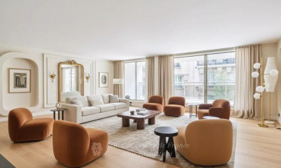 Faisant face au jardin du Ranelagh, ce bel appartement de réception et familial de 214 m² occupe le 3e étage d'un immeuble fin des années 1960 / début 1970, dont le hall avec marbre clair, bois sculpté décoratif et plafond laqué est typique des immeubles luxueux de cette période, influencés par le design italien et scandinave. Ouvrant sur un large balcon-terrasse et offrant une vue dégagée sur les arbres du jardin et la tour Eiffel, l’appartement dispose d’un vaste salon, d’une salle à manger et d’une cuisine attenante. Au calme absolu côté jardin de la copropriété, se trouvent une généreuse suite parentale avec dressing et salle de bain complète, ainsi que deux autres chambres avec salle de bain avec toilette, un studio indépendant — actuellement relié à l’appartement — avec sa propre salle d’eau et toilette ; un vestiaire et toilettes invités et une lingerie. 3 emplacements de parkings possibles en supplément du prix: un parking double à 120.000€ et un parking simple à 60.000€.