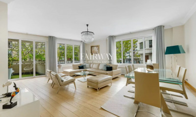 Au 4ème étage d’un immeuble contemporain de standing, au cœur du très recherché triangle d’or de l’OCDE, cet appartement climatisé d’environ 130 m² à rénover, bénéficie d’une superbe luminosité et d’un fort potentiel. Il s’ouvre sur une élégante galerie d’entrée menant à un vaste double séjour avec balcon filant de plus de 15 m² orienté Ouest offrant une superbe vue ciel et dégagée, une master suite baignée de soleil, une spacieuse salle de bains avec baignoire, douche et toilette, un bureau, un dressing, un cabinet de toilette d’invité ainsi qu’une cuisine indépendante. Sa configuration actuelle pourrait être remaniée pour obtenir deux chambres et deux salles de bains. Idéalement situé, à deux pas des écoles réputées du 16ème arrondissement et des commerces de la rue de Passy, ce bien rare bénéficie d’un emplacement privilégié et d'un environnement calme et sécurisé. En complément, une chambre de service de 9 m² à 110.000 € HAI ainsi qu’un emplacement de parking dans l’immeuble au prix de 70.000 € HAI sont proposés en sus. Une cave complète l’ensemble. Bien soumis au régime de copropriété. Honoraires de 4.5%, 72 775 € à la charge de l'acquéreur soit 1 617 225 € NV