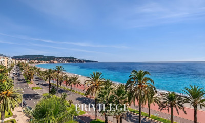 Dans un immeuble de grand standing avec gardien sur la Promenade des Anglais, ce superbe appartement situé au sixième étage offre une vue mer panoramique d'une rare élégance. Baigné de lumière, il séduit par ses volumes et par le prestige d'une adresse emblématique face à la Méditerranée. Développant 175 m² Loi Carrez, l'appartement séduit par ses vastes espaces de vie, la qualité de ses volumes et une configuration offrant de multiples possibilités d'aménagement. Les pièces de réception, aux proportions remarquables, s'ouvrent largement vers la mer et créent un cadre idéal pour recevoir. Deux terrasses prolongent les espaces de vie et totalisent 32,90 m², invitant à profiter pleinement du panorama et de la douceur du climat niçois. L'appartement est complété par deux caves, apportant un confort de rangement appréciable. Un garage et un parking sont proposés en sus, un atout rare sur ce secteur recherché. Une opportunité d'exception réunissant étage élevé, vue mer spectaculaire, surfaces généreuses et prestations de résidence, au cœur de l'une des adresses les plus prestigieuses de Nice.