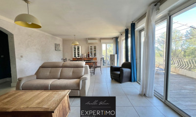 Au cœur du quartier prisé de Saint Barnabé, qui a conservé une ambiance conviviale dans un esprit villageois, proche des commerces et des transports en commun, venez découvrir cette belle résidence aux lignes contemporaines et pures. Je vous propose cet appartement T5 exceptionnel de 125 m² au calme, offrant une terrasse de 94 m² et un roof top de 110 m², à l'intérieur de la résidence sécurisée. Vous apprécierez sa belle pièce de vie avec son coin cuisine , très lumineuse grâce à de belles ouvertures orientées Sud et Ouest, donnant accès à une terrasse exceptionnelle. Vous disposerez d'une suite parentale de 22 m², de 3 chambres, d'une salle d'eau, d'un dressing, d'une buanderie et d'un WC supplémentaire séparé. Depuis la terrasse, vous pourrez accéder au toit terrasse de 110 m², agrémenté d'une pergola, d'un jacuzzi et d'une belle jardinière, qui vous offrira des vues magnifiques sur Marseille, la mer et les collines. Les prestations sont très soignées : pompe à chaleur pour le confort hiver comme été avec un système gainé dans chaque pièce, des carrelages de grandes dimensions, chauffe-eau thermodynamique, WC suspendu.. Cet appartement est à vendre avec des garages en sous-sol. Pour de plus amples renseignements n'hésitez pas à me contacter. Les informations sur les risques auxquels ce bien est exposé sont disponibles sur le site Géorisques : georisques. gouv. fr. Réseau Immobilier CAPIFRANCE - Votre agent commercial (RSAC N°835 092 875 - Greffe de AIX EN PROVENCE) Brigitte BREVET Entrepreneur Individuel à Responsabilité Limitée Réf.304121