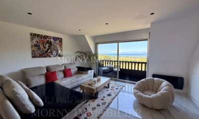 Mont Canisy - Appartement de 88,67 m² loi carrez (103,84 m² au sol) situé au 2 € étage, entièrement rénové en 2025, offrant une vue dégagée exceptionnelle sur la mer et la campagne, avec balcon. Il se compose, au premier niveau, d'une cuisine ouverte sur la salle à manger avec vue mer, d'un salon lumineux bénéficiant également d'une vue mer et d'un accès direct au balcon, ainsi que d'une salle de douche avec toilettes invités. À l'étage, deux chambres confortables, l'une avec vue campagne et l'autre avec vue mer, accompagnées d'une salle de douche avec toilettes. Le dernier niveau accueille une salle de jeux ou une chambre, offrant un espace supplémentaire polyvalent. Une cave complète ce bien, idéal en résidence principale ou secondaire. Parking extérieur