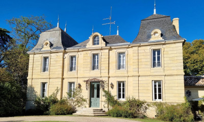 Dans une petite ville, maison de maître du XVIIIe composée d'un corps de bâtiment et deux ailes aménagées, d'environ 700 m² sur 2,3 ha. Au rez-de-chaussée : vaste entrée, 3 pièces de réception en enfilade ayant gardé leurs prestations anciennes, cuisine équipée et une belle chambre, sa salle d'eau et des toilettes. Un escalier majestueux dessert à l'étage 8 belles chambres, chacune ayant sa salle de bains et ses toilettes ainsi qu'un bureau, une pièce lingerie/repassage et un dressing. Dans le prolongement d'une aile, un appartement indépendant de 70 m² est composé d'une cuisine, salon, 2 chambres et salle de bains. A cela s'ajoute encore un entrepôt de 100m², un garage de 65m², la chaufferie de 85m2, un carport, une cabane dans les arbres, une terrasse couverte et une piscine intérieure (sinistrée, suite intempéries, en cours de traitement) A 25 minutes de Libourne et Saint-Emilion, Commerces, supermarchés, écoles et gare SNCF à 5 minutes. Honoraires charge vendeur. Montant estimé des dépenses annuelles d'énergie pour un usage standard : entre 14 830 euros et 20 110 euros par an. Prix indexés au 1er janvier 2021. Les informations sur les risques auxquels ce bien est exposé sont disponibles sur le site Géorisques :