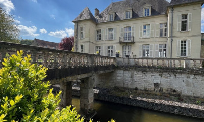 À 1 h de Paris, dans l'Oise, un château du 19e s. surplombant un paysage vallonné, au sein d'un parc boisé de 10 ha. Proche de l'église, mais protégé du village par un mur d'enceinte en pierre et dominant la campagne environnante, sillonnée par un cours d'eau, le château s'élève sur trois étages au-dessus du niveau des caves et forme un vaste quadrilatère en pierre de taille. Un grand espace gazonné devance la façade principale, tandis qu'un bois dense se trouve sur les côtés. Des communs en brique et en pierre, une maison de régisseur et diverses remises ainsi qu'une chapelle s'ajoutent à la propriété.