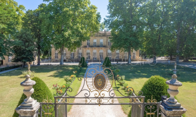 Ce château, monument historique depuis 1957, est situé dans le Luberon, à quelques kilomètres de Forcalquier. C'est une propriété exceptionnelle datant du début du XVIIIe siècle, construite à l'initiative de la famille de Forbin-Janson d'après des plans du célèbre architecte parisien Pierre-Alexis Delamair (Hotel de Soubise et Hôtel de Rohan à Paris abritant tout deux les archives nationales, Palais des Rohan à Strasbourg..), avec le concours de l'architecte avignonnais Jean-Baptiste Franque (Musée Calvet en Avignon, Château La Nerthe à Châteauneuf-du-Pape..). Il offre un programme architectural de grande qualité, illustrant la diffusion en province de modèles prestigieux. La propriété est implantée sur un terrain non clôturé d'environ 14 ha, formant un parc qui s'ouvre sur le paysage grandiose du village et de la montagne de Lure. Restauré depuis près de 40 ans, le Château a retrouvé son lustre d'époque : tapisseries, bas reliefs, lustres d'époques et mobilier d'origine retrouvé témoignent d'une attention du détail, du patrimoine et de l'histoire du Château. Élevé de deux niveaux sur environ 1600m2 selon un plan très épuré, laissant de toute part entrer la lumière, le Château présente au rez-de-chaussée de larges espaces de réception, salons, salle à manger, salon de musique et un hall avec un escalier monumental menant à 8 chambres/appartements, un salon du billard et une chapelle. Au Nord, jouxtant un bassin d'agrément, une orangerie est aménagée en salle de réception pour 150 personnes au rez-de-chaussée, son étage reste à aménager. Des annexes partiellement aménagées comprennent deux gîtes (une et deux chambres) et trois chambres d'hôtes. Au sud, d'anciennes écuries bâties sur les ruines d'un ancien château permettent aujourd'hui de stocker le matériel de jardinage. Le parc servant d'écrin à ce joyau de Provence se compose d'une cour d'honneur engazonnée à l'Ouest, derrière un majestueux portail en fer forgé, puis d'une large terrasse panoramique à l'Est, surplombant un jardin suspendu et une grande esplanade engazonnée destinée à devenir le jardin à la française dont le plan d'aménagement a été travaillé en collaboration avec la Direction des Monuments Historiques. Ce parc à reçu le label “Jardin remarquable en 2005”. A une heure au Nord d'Aix en Provence, facilement accessible par l'autoroute A51, ce Château concilie une architecture d'une rare finesse dans le cadre remarquable de la Provence de Giono, il saura séduire les esthètes amoureux du Patrimoine et de l'Histoire.