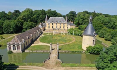 Ref.4757 : Château à vendre près du Mans (Sarthe). Situé au cœur de la Sarthe, à la campagne, dans un joli environnement vallonné, ce château bénéficie d'une grande facilité d'accès. À seulement 12 km du Mans, il profite de la proximité immédiate d'une ville dynamique disposant d'une gare TGV (Paris 55 minutes), de grands axes autoroutiers, d'infrastructures hospitalières, d'établissements scolaires ainsi que d'une vie culturelle riche. Implantée à l'écart du centre de la commune, accessible en quelques minutes, la propriété se trouve à proximité de commerces, d'écoles et de services, ainsi que de nombreuses activités culturelles, sportives et de loisirs, offrant un équilibre idéal entre vie rurale et facilité citadine. Ce séduisant château a conservé de nombreux éléments d'origine. D'une surface habitable d'environ 410 m², il est confortable et offre de beaux volumes et une capacité d'accueil appréciable, idéale pour une résidence familiale ou un projet d'accueil. Le rez-de-chaussée présente de belles pièces de réception : 2 salons (hauteur sous plafond (HSP) : 3,15 m), dont un bénéficiant d'un bow-window ouvrant sur le parc, dotés de cheminées et de parquets en point de Hongrie offrent un cadre chaleureux et raffiné. Entrée avec départ d'escalier ; salle à manger ; belle cuisine moderne avec accès vers l'extérieur. Escalier de service, buanderie et une , à usage de chaufferie. Le 1er étage dessert un palier menant à une salle de jeux et de projection (HSP : 2,67 m). Une suite confortable comprend une chambre (HSP : 3,15 m), un dressing et une vaste salle de bains avec douche, baignoire, double vasque et wc séparés. 2 autres chambres disposent chacune de leur salle d'eau attenante ; l'une d'elles bénéficie d'un bureau aménagé dans une tourelle, apportant un charme tout particulier. Au 2e étage, 2 chambres, une salle d'eau avec douche et lavabo, wc indépendant et grenier. Cave sous partie. Les dépendances comprennent : Un bâtiment en pierre enduite sous tuiles qui abrite : un garage (25 m² : 6.31x3.96 m) ; une ancienne sellerie, autre garage de 40 m² ( 8.32 x 4.87 m) ; une pièce avec cheminée (17.56 m², HSP : 3.29 m) ; une ancienne salle d'eau (5.79m²). Dans le parc, une cave aménagée (24 m² : 8x3 m, HSP : 2.40m). Un abri ouvert Piscine extérieure (5 x 12 m), équipée d'un liner et chauffée par pompe à chaleur installée en 2021, avec traitement au chlore. Le château est implanté au cœur d'un charmant parc à l'anglaise planté de beaux arbres d'ornement aux nombreuses essences remarquables (chênes, tilleuls, ginkgo biloba, liquidambar, magnolias, araucarias et cèdres) d'une surface totale de 3ha 21a 54ca. La propriété est close par un grillage de 2 mètres de hauteur et sécurisé par un portail automatique. La propriété est libre de toute occupation.