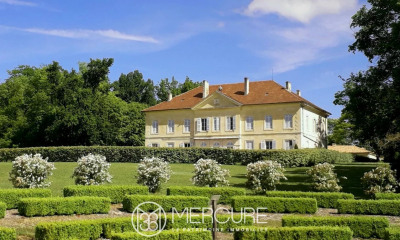 Cet élégant château ISMH du XVIIIe siècle, de style néoclassique, de 900m2, domine le paysage et présente avec majesté 2 sublimes façades. L'une coupée en demi-lune en son centre et escalier à double révolution, l'autre avec fronton triangulaire. Charme fou d'un salon de musique en rotonde avec parquet à rosace, grands salons de réception et salle à manger à larges ouvertures, salon/bar, bureau, appartement privatif en rez-de-chaussée avec 2 chambres. Au 1er étage, 10 chambres équipées de salles de bains/salles d'eau. Vaste sous-sol avec lingerie et larges caves voutées en excellent état servant de salles de réception. Parc, bois avec allées de promenade, surface : 9 ha, piscine, source, garages, maison de gardien à rénover. Propriété située non loin de Périgueux et toutes commodités. Honoraires charge vendeur. Classe énergie : N/A Classe climat : N/A Les informations sur les risques auxquels ce bien est exposé sont disponibles sur le site Géorisques :