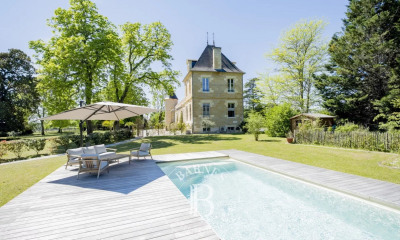 En plein coeur de l'appellation Pessac-Léognan, à 30 min de Bordeaux, magnifique propriété, avec un château du XVIIIème siècle, entièrement rénové, d'environ 400 m² habitables. Il dispose au rez-de-chaussée d'une vaste entrée, de deux salons, d'une salle à manger, d'une cuisine et d'une chambre avec sa salle d'eau. Au 1er étage, quatre chambres dont une suite parentale avec son dressing et sa salle de bains, trois salles de bains et un bureau. Une dépendance de 75 m² entièrement rénovée comprend au rez-de-chaussée un séjour avec une cuisine américaine et au 1er étage deux chambres et une salle d'eau. Une ravissante tour aménagée de 30 m² jouxte le château et comprend un salon, une chambre, une salle d'eau et un sauna. Une piscine, son pool house de 50 m², un tennis et garage complètent cette propriété d'exception dotée d'un très beau parc de deux hectares.