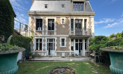 Dans le Perche, dans le centre-ville de Nogent-le-Rotrou, une maison de maître 1900 de 270 m² et son jardin de 2 000 m². En position dominante dans le centre-ville, exposée ouest côté rue, la maison, établie en bordure de chaussée, est séparée du voisinage par une cour. Elle se compose d'un corps principal bâti suivant un plan rectangulaire, prolongé sur chacun des pignons par des dépendances à usage d'orangerie et d'atelier d'artiste. Elle est élevée de quatre niveaux, dont un de caves et un de combles. Construite en moellons enduits, les façades sont parées d'éléments architecturaux : pilastres, corniches, bandeaux et chainages d'angle en pierre de tuffeau. La toiture à quatre pans, en ardoises du pays, est scandée de plusieurs fenêtres de toit, de lucarnes et de trois souches de cheminées. Le jardin, qui surplombe la maison côté est, agrémenté d'un pigeonnier, ne se dévoile qu'une fois franchi le haut portail ouvrant sur la cour.